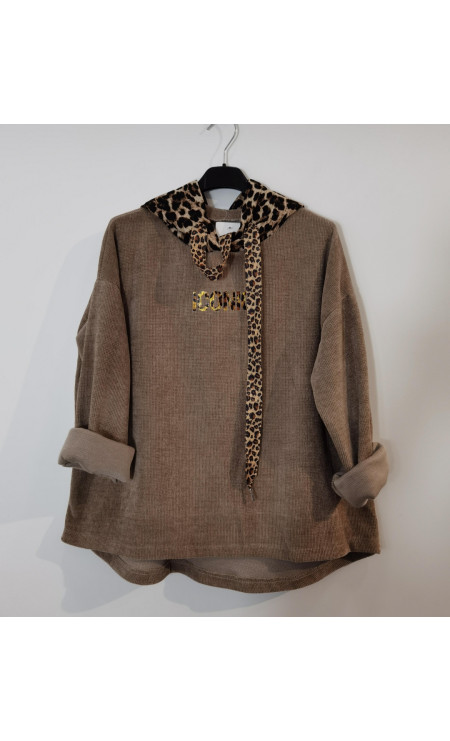 Add to wishlist Add to cart Quick view Sweat Isabelle TU Prix 29,00 € Pull ISABELLE en velours avec capuche en léopard. Taille unique 38/40 Produit : 5% Élasthanne - 95% Polyester TU Beige