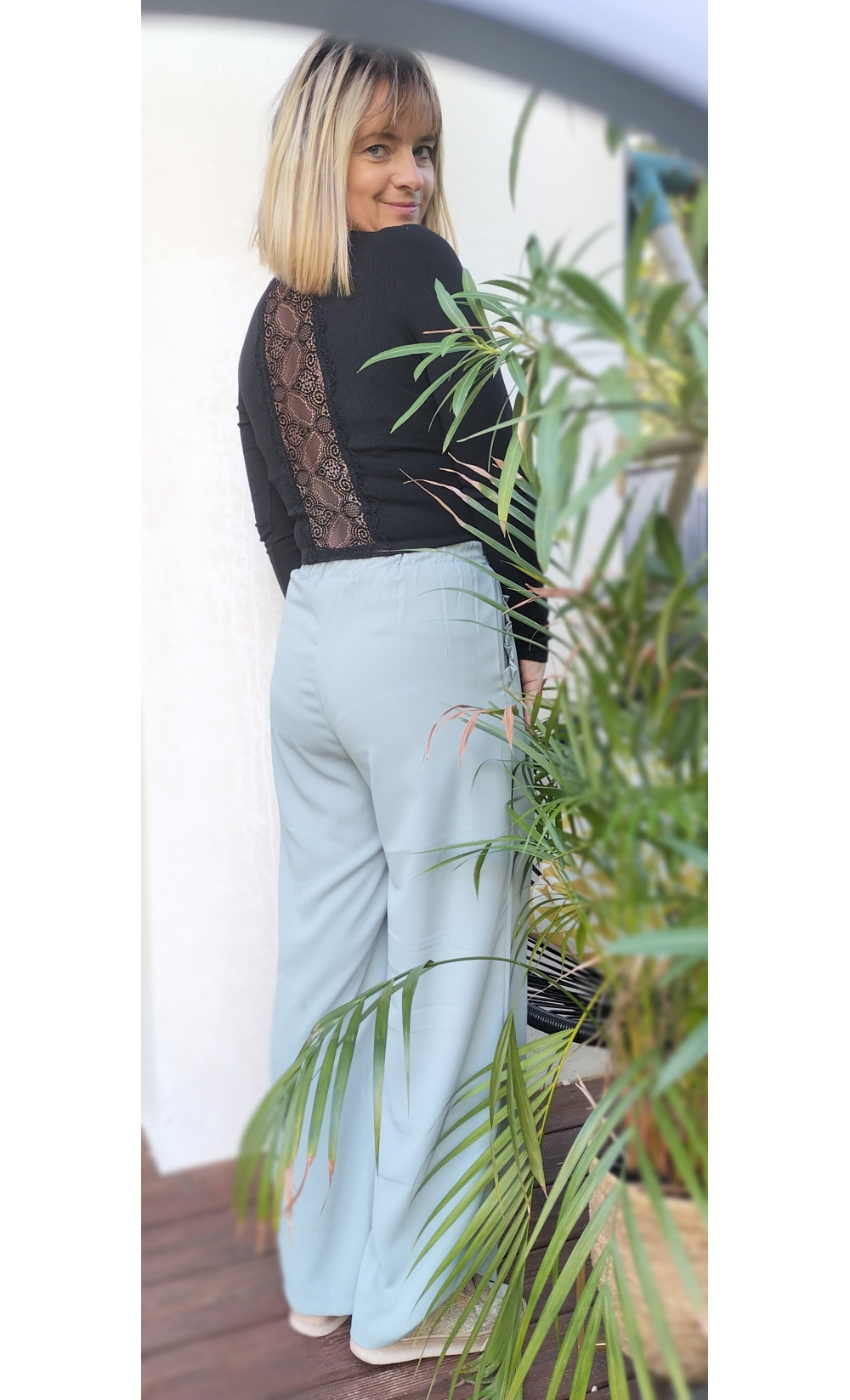 T-shirt en manches longues dos en dentelle.