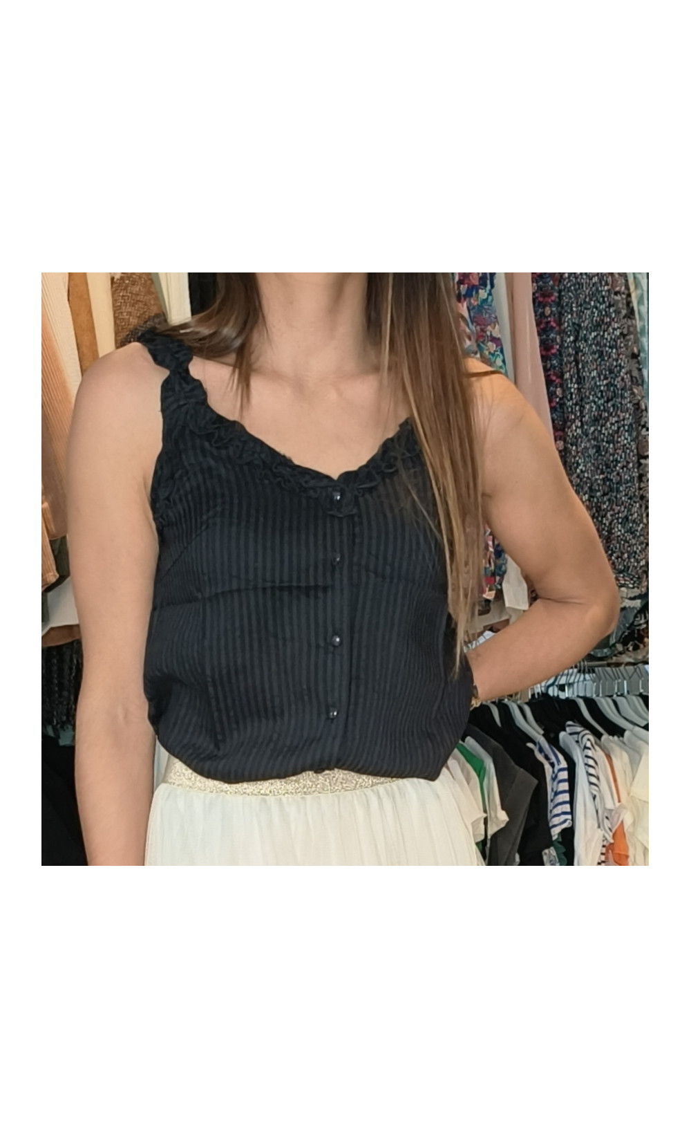 Jolie petite top avec petit bouton sur le devant la taille SM correspond à un 34 /36.