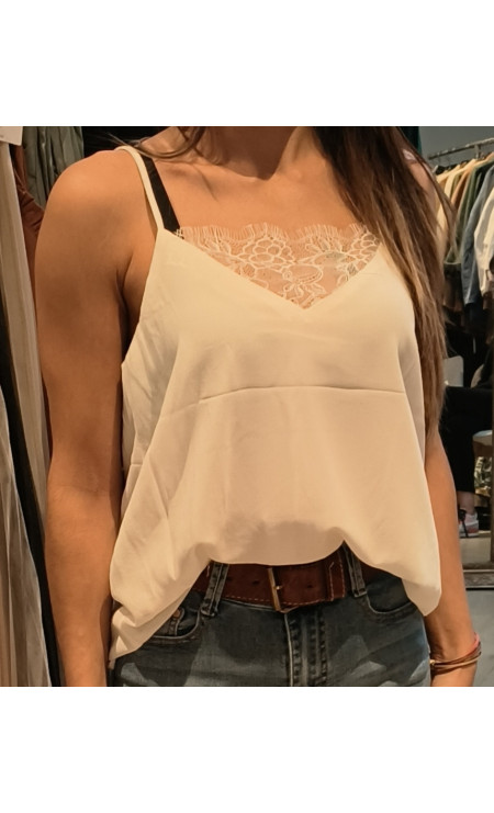 Jolie petit top doublé avec dentelle sur le devant ainsi que dans le dos fine bretelle.