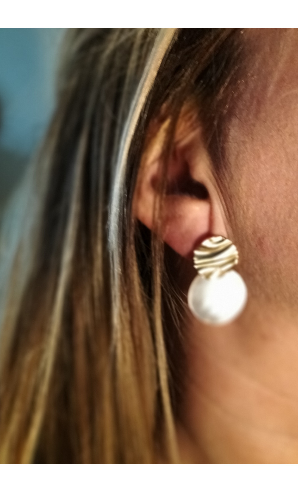 Boucle ronde doré et nacre
