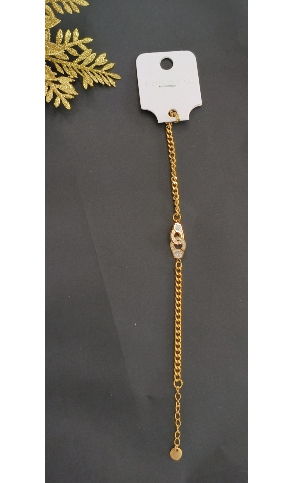 Bracelet en chaînette acier inoxydable petite menotte tout en strass.