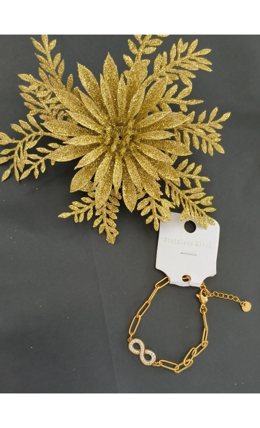 Bracelet plus grosse maille en acier inoxydable avec le signe de l'infini petit strass.