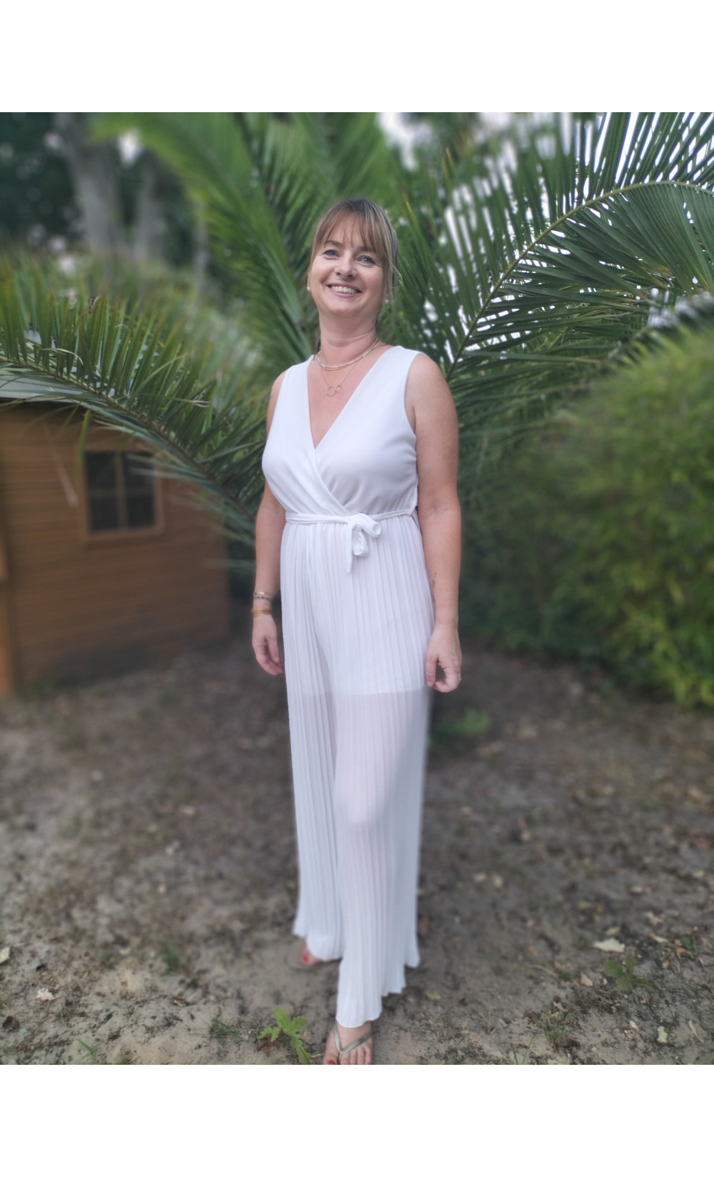 Combi pantalon légère fluide croisé devant et dos élastique sous la taille doublure niveau short.