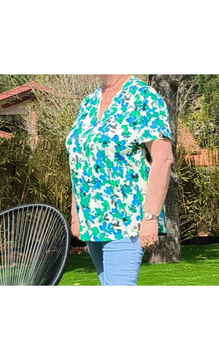 T-shirt encolure en V fluide très beau coloris taille bien.