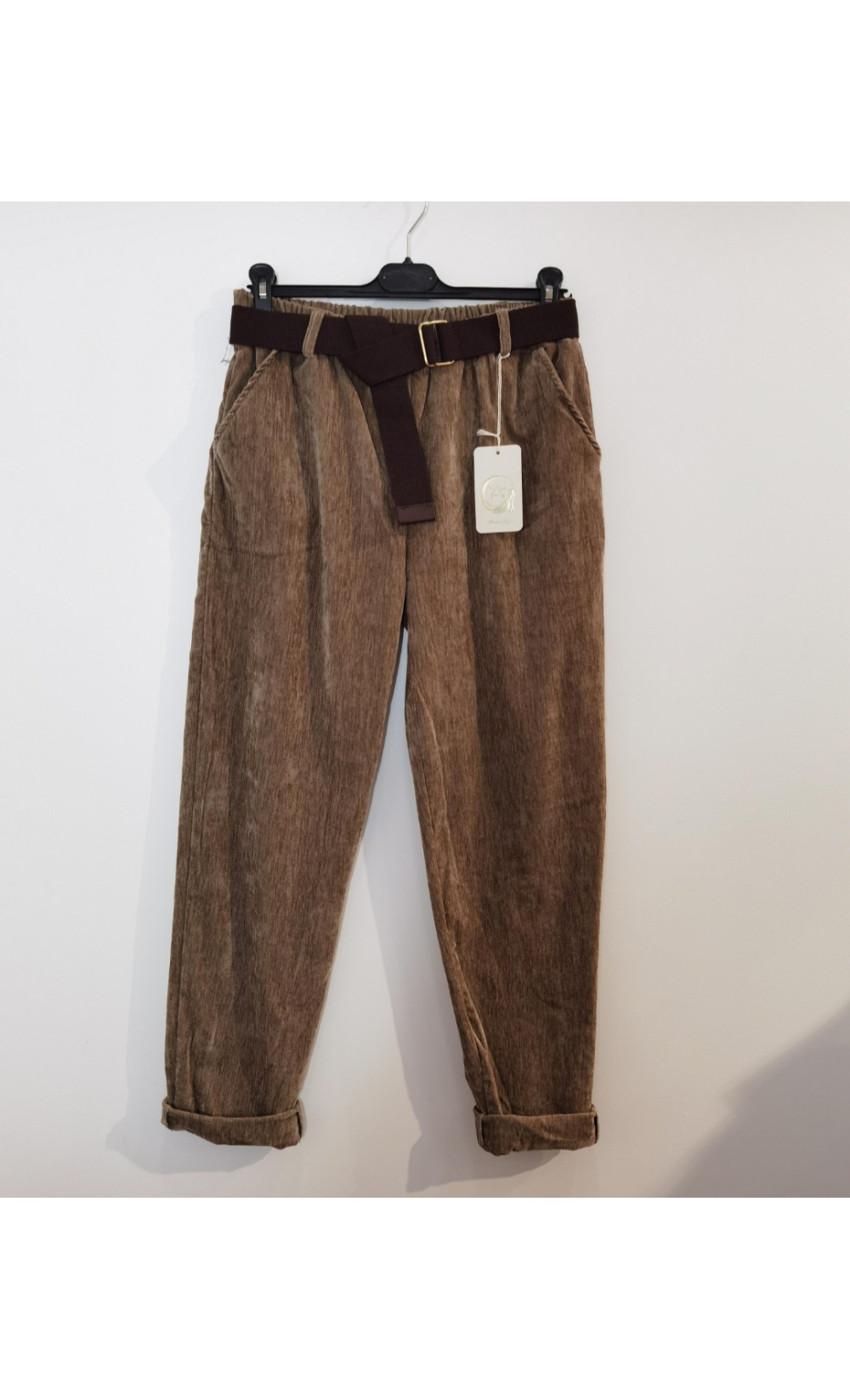 Pantalon VANESSA confortable en velours avec ceinture. Taille unique 38/46