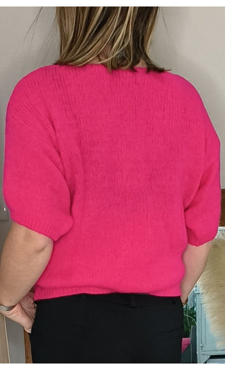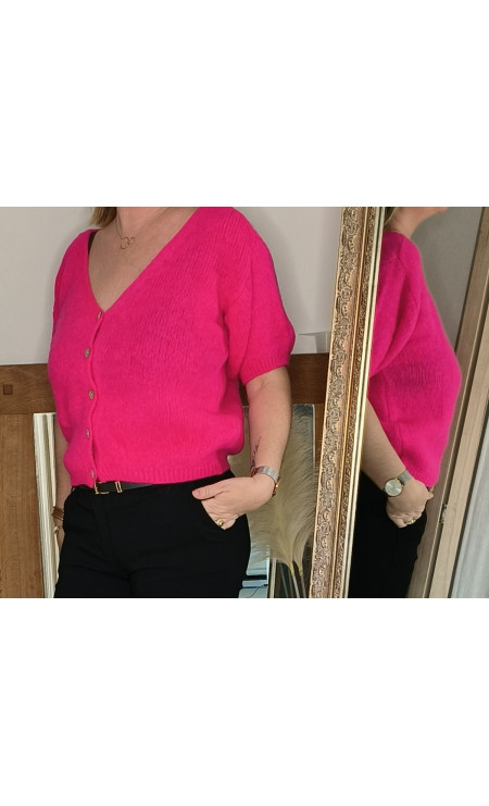 Pull gilet manches courtes boutonnée sur le devant. Très doux ne gratte pas.
