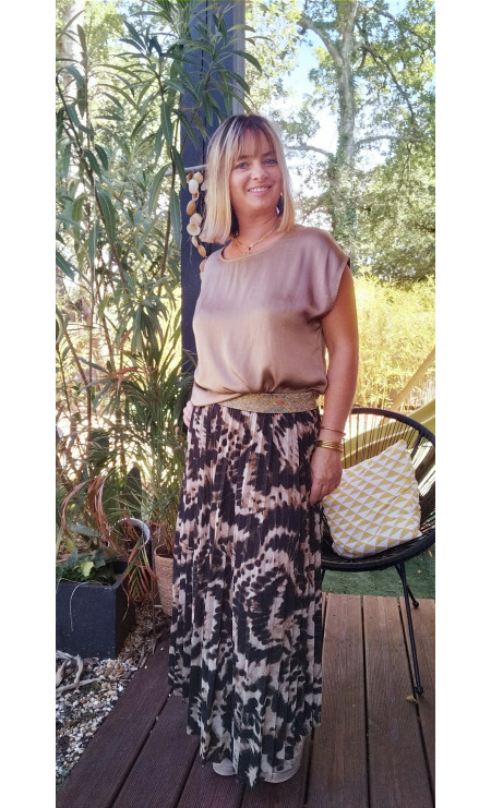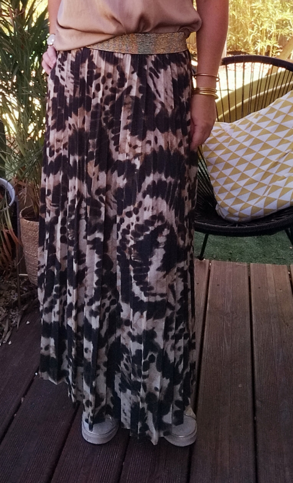 Jupe motif spirale taille élastique avec large bande doré. Tu 36/46