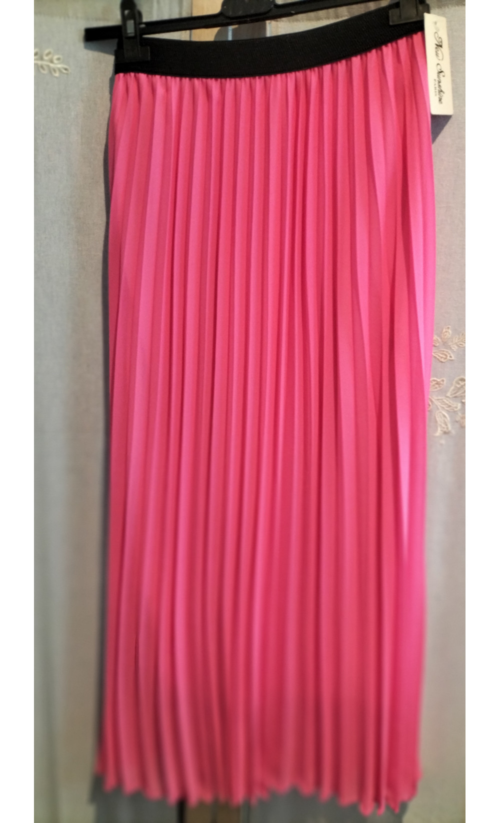 Jupe longue plissée élastique à la taille doublée jusqu'en bas. TU 36/44 Le mannequin mesure 1.62cm.