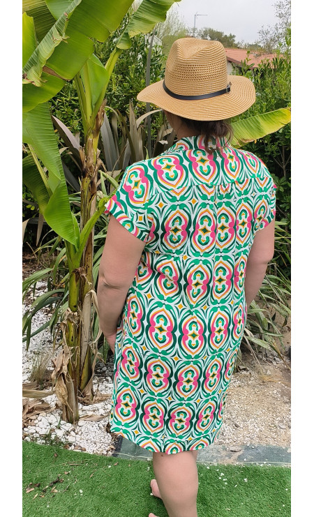 Robe droite col chemise avec trois petits boutons passant pour ceinture.