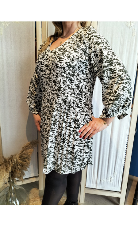 Robe plissée légère avec manche longue réglable par un bouton. Le mannequin porte une taille M est fait un 40/42.
