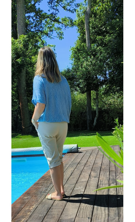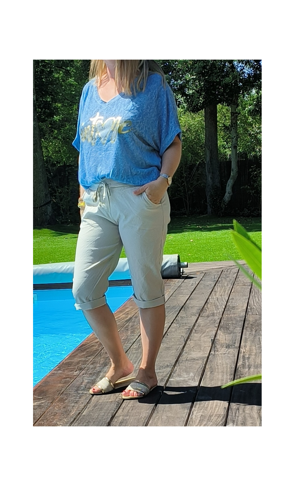 Bermuda élastique à la taille liens pour resserrer poche sur les côtés vous pouvez le retrousser à la hauteur que vous le désirez.